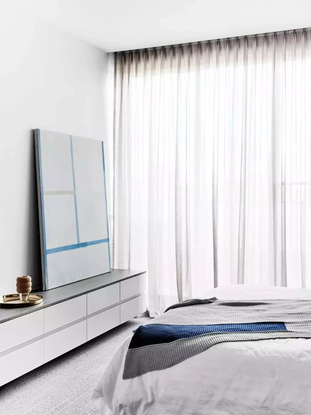 ▲窗帘的选择上可以根据房间的属性来挑选窗帘材质。窗帘的材质有很多种,棉、麻、丝、涤纶、绒面想好窗帘在空间里要承载的功能,是保持隐私性?遮光性?或者只是希望它长得好看?一旦你想清楚了目的,就很好选了。