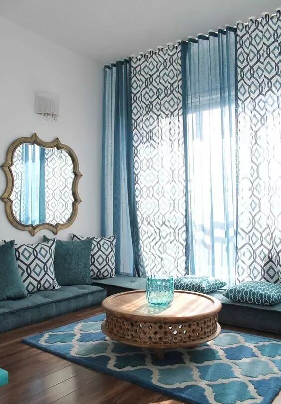 4.常见的就是窗帘颜色跟着抱枕走,最为安全,有时候可以不用纠结花色,只要保持颜色一致即可。