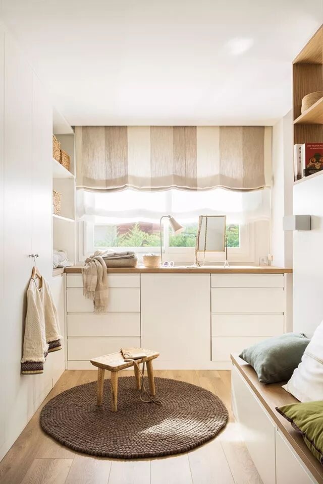 稍微有别于地板和墙壁,营造出同一色系的不同明度,增加层次感。