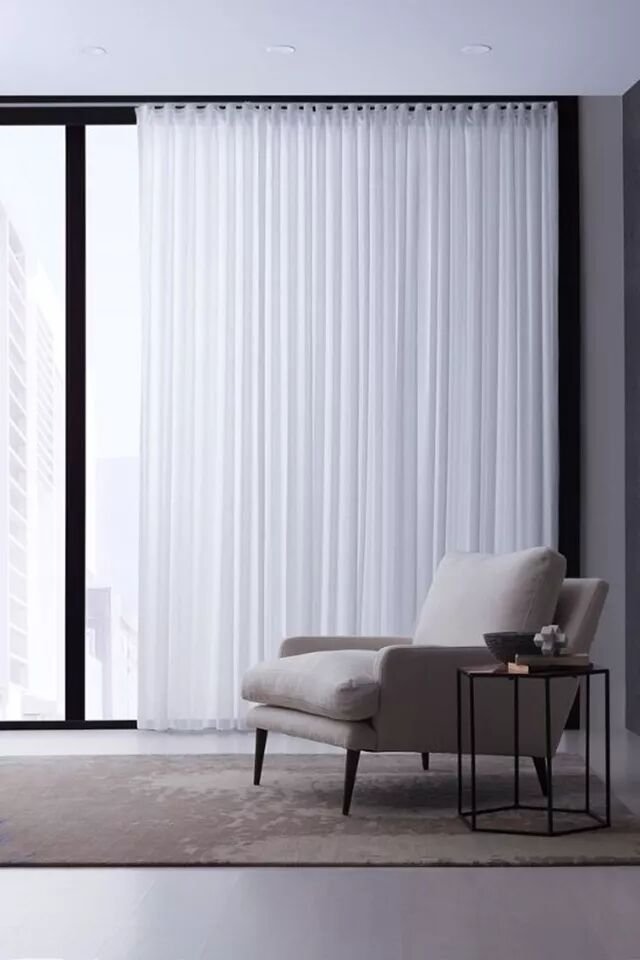 薄型织物的垂帘,如薄棉布、薄罗纱、网眼布等,能透过一定程度的自然光线,更适用于需要与外界沟通的大空间。