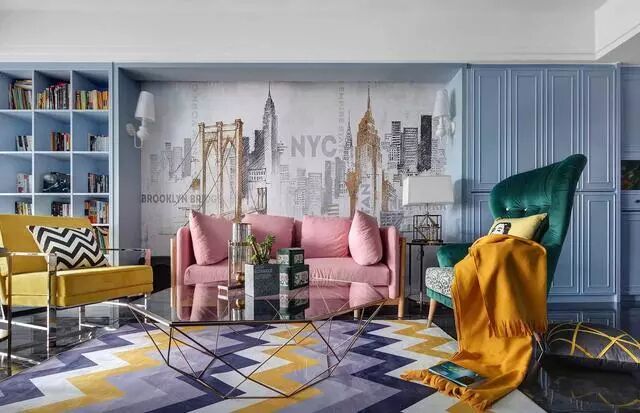 客厅一般面积较其他房间的大,色彩运用也最为丰富。客厅的色彩要以反映热情好客的暖色调为基调,并可有较大的色彩跳跃和强烈的对比,突出各个重点装饰部位。