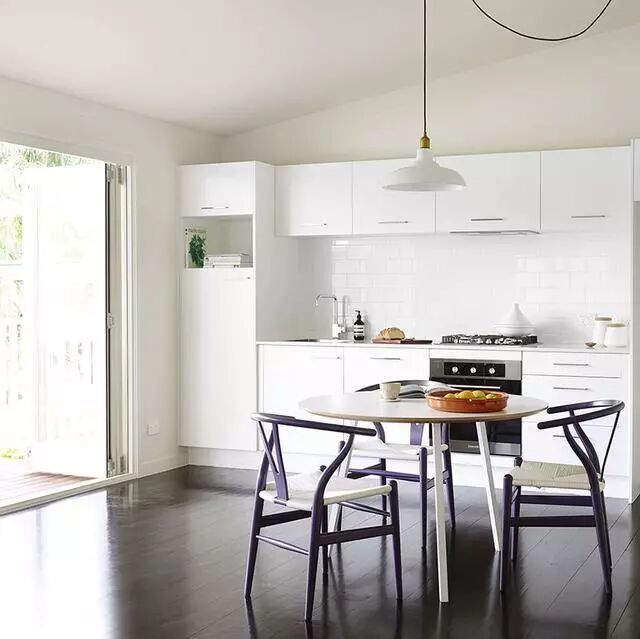 反之,空间狭小、采光不足的厨房,这相对适合用明度和纯度较高、反光性较强的色彩,因为这类色彩具有空间扩张感,在视觉上可以弥补空间小和采光不足的缺陷。