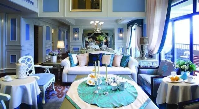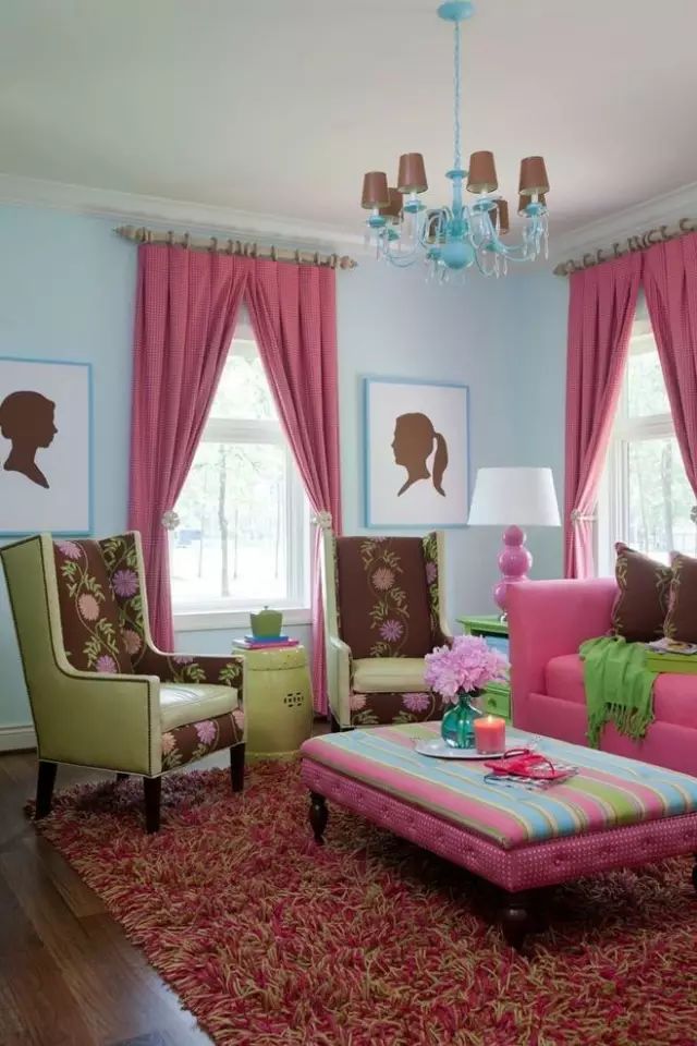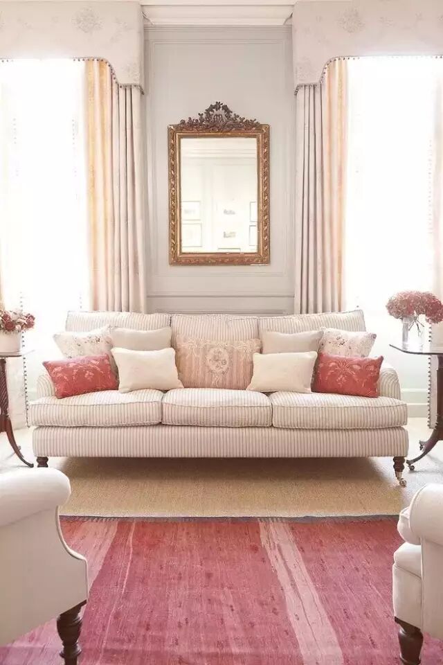 花色相间的搭配相对大胆,例如窗帘花色与客厅的沙发、单人椅或是沙发上的抱枕相同,看似漫不经心,却处处透着精心的设计。