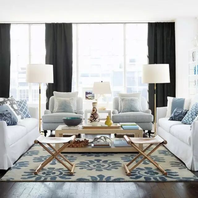 经典又时尚的对比色,让窗帘从客厅里跳出来,而不是被“吃”掉。