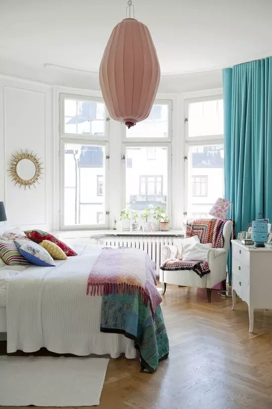 丰富的花纹窗帘,有趣且不单调,但不易搭配,没有选择好的话,容易毁掉整个空间。