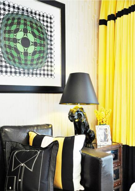 ◆ 窗帘应该按照室内的色彩搭配来选择,比如室内小面积使用黄色,最好搭配的窗帘也是同色,或者再稍微深一点。