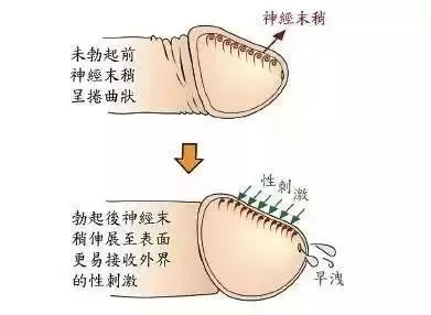 过长的包皮平时包裹着龟头,导致龟头无法完全暴露,由于龟头长期被包裹,缺乏外界的刺激,龟头黏膜的神经就会十分敏感,在性生活过程中,勃起的龟头完全暴露,直接与阴道壁发生接触和摩擦,这样强烈的刺激,过于敏感的龟头难以承受,从而很快就发生射精。