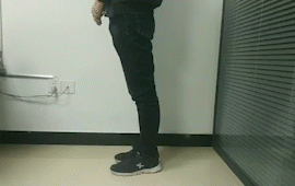 动作要领:全身放松,双脚并拢站立,两脚跟慢慢向上提起,注意脚趾抓地、脚跟尽力上抬;头部自然上顶,肩臂松沉;然后轻轻地颠动足部。