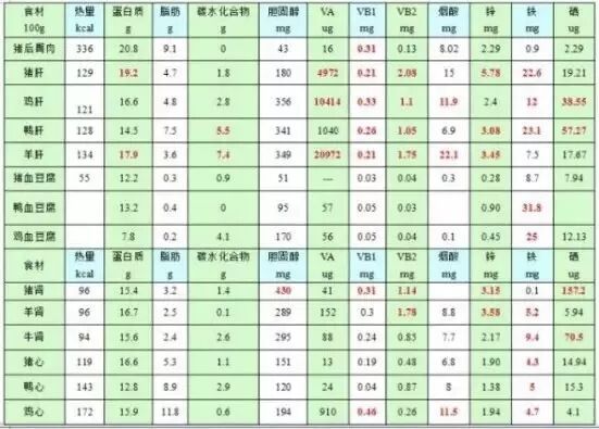 但这高得吓人的维生素 A 仅限于肝脏类,一到肾脏就在 100 微克上下浮动了,而猪肚牛肚之类的都只含 2-5 微克的维生素 A。