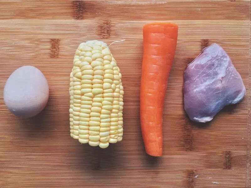 食材:鸡胸肉1块,玉米粒和胡萝卜粒,鸡蛋1个,香油,生抽,蚝油,胡椒粉, 盐,生粉