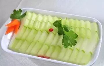 黄瓜清脆可口,具有清热、解渴、利尿的作用。黄瓜中含有丰富的纤维素,能够促进肠道排出食物残渣,减少人体对胆固醇的吸收。黄瓜中还含有一种叫“丙醇二酸”的营养素,能够抑制体内的糖类转变成脂肪,有减肥和调整脂质代谢的功效