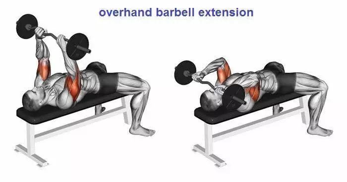 躺姿额头哑铃臂屈伸