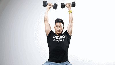 增肌人群可隔2天训练,每个动作10-12次*2-3组,选择5-10公斤一副的哑铃(肩部训练时需要减少重量);减脂人群隔天训练,每个动作15-20次*3-4组,选择4-5公斤一副的哑铃即可。