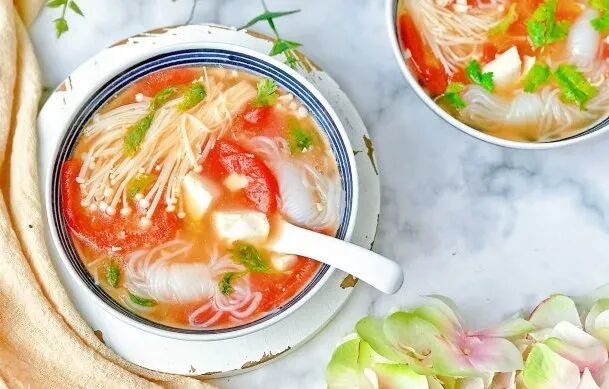 番茄豆腐金针菇魔芋火锅