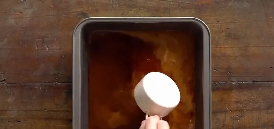 木薯淀粉加水搅拌均匀,倒入烤盘