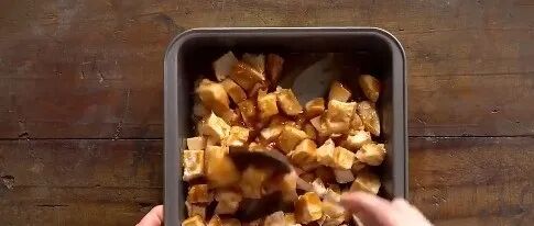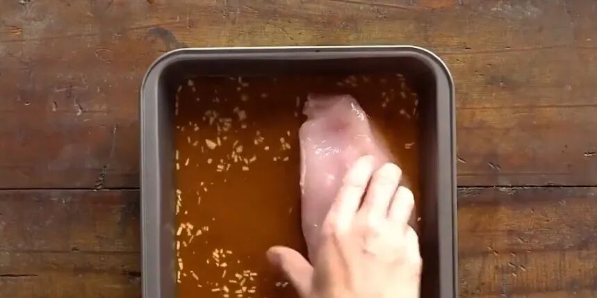 放入鸡胸肉,裹满酱料腌制一会,放入200摄氏度的烤箱,烘烤25分钟
