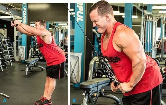 比如直臂下拉就是一个很好的预先疲劳动作,在热身后,先进行3-4组,12-15次的直臂下拉,再去完成你常规的训练,你会感受背阔肌有前所未有的参与程度。