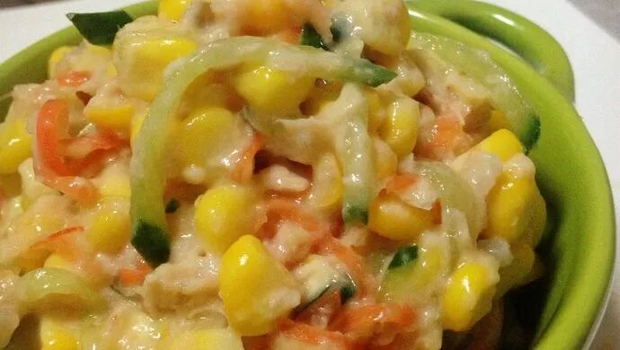 ②甜玉米粒煮熟沥去水份,金枪鱼从罐头中捞出去掉多余的油份,洋葱、胡萝卜、黄瓜切成小丁。