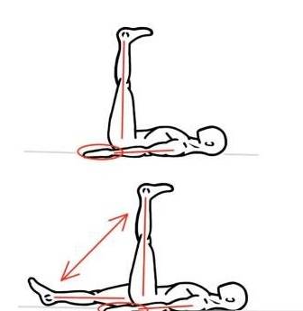 ④ 屈膝脚踩地式仰卧放腿:固定脚采用屈膝踩地的的姿势