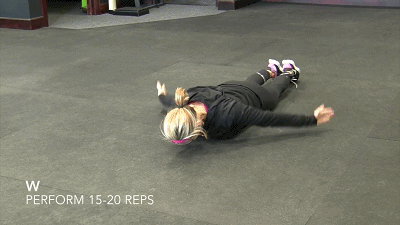 当你能够感觉到肌肉的收缩后,你需要增加小小的负重,双手各拿一个矿泉水开始, 这个动作不适合用大重量进行,那只是在浪费时间 ,另外,W动作如果要负重的,可能需要一个弹力带,从头顶向下拉动的过程。