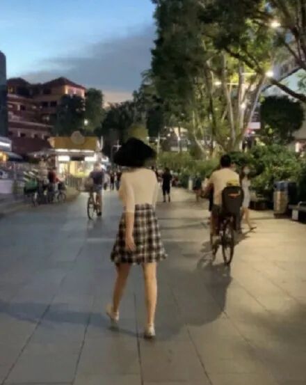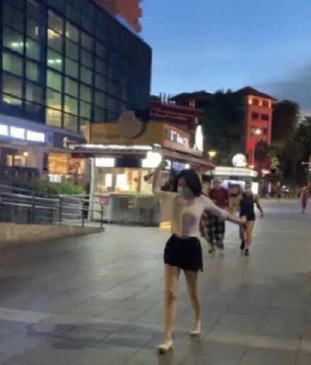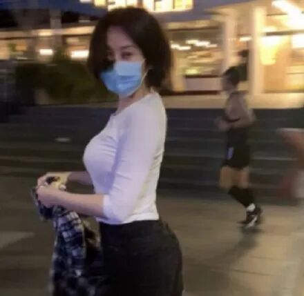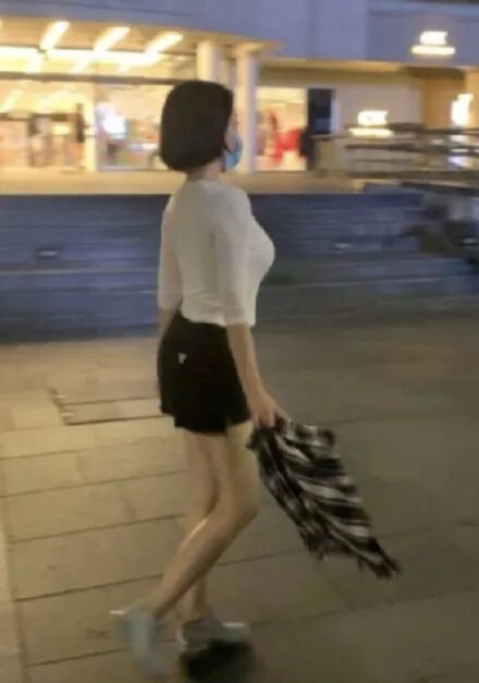只见她身穿紧身针织上衣搭配牛仔短裤