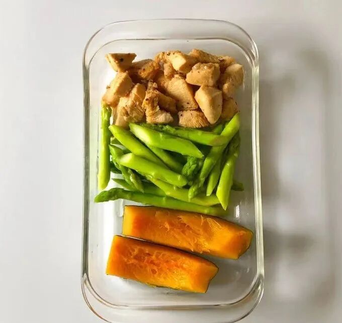 黑胡椒鸡胸肉+水煮芦笋+蒸南瓜