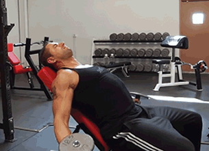 启动胸肌向上内收哑铃,动作顶端让你的两只大臂努力靠近,挤压胸肌。并停留一秒,然后再慢慢下放!