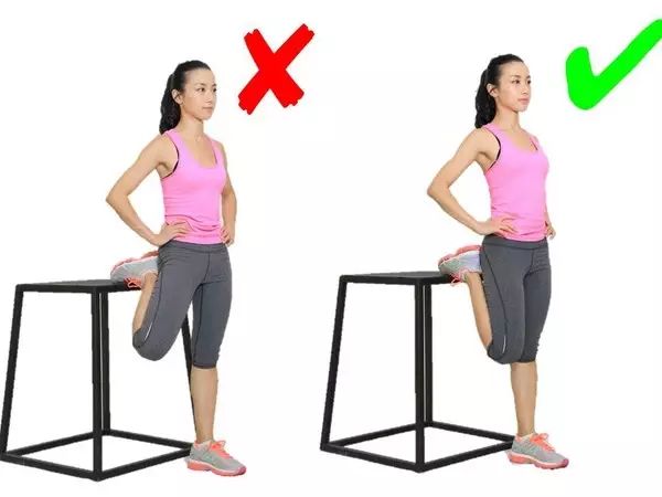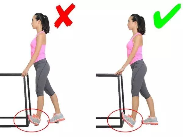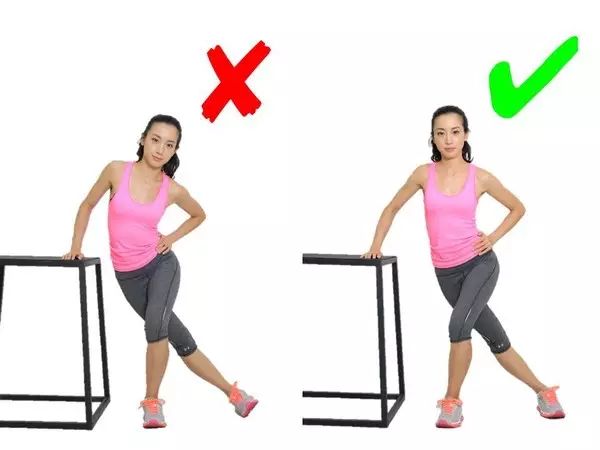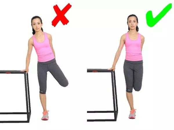 这个动作每个想瘦小腿的妹子都会做,这一动作,脚跟向下踩的同时,注意脚尖一定要朝向正前方!脚尖方向朝外既没有办法充分拉伸到小腿三头肌,还容易拉低足弓导致扁平足,是个严重的错误动作!