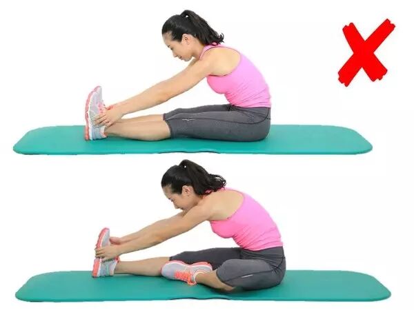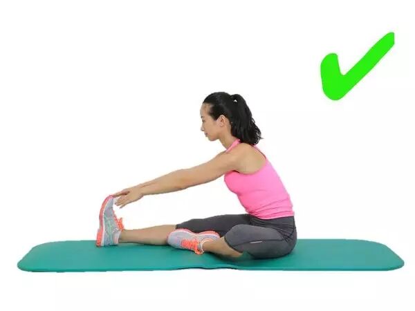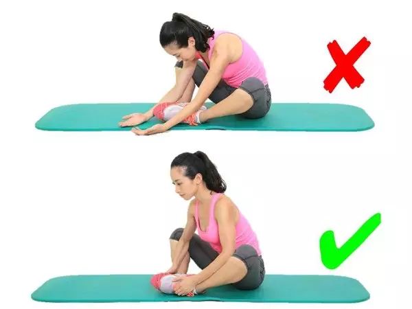 看看,你是不是就按下图这么拉的!?这个动作并不是大腿后侧的最佳拉伸方案。下图那个才是坐姿拉伸的最佳方案,但是,弯腰弓背就不仅失去了效果,还容易造成脊柱的过大压力。