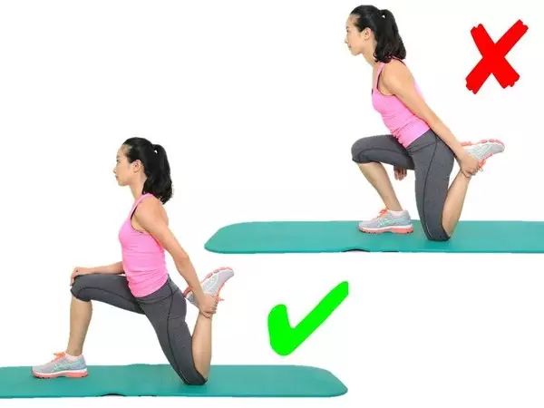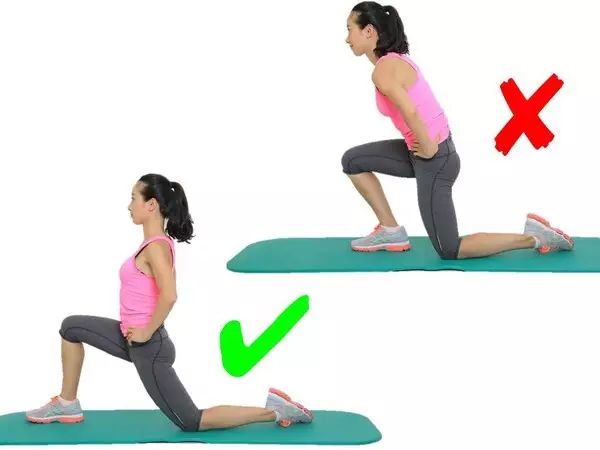 弓箭步一定要大,同时要注意腰背挺直,身体不要前倾,这样的错误既没有办法充分的拉伸到髂腰肌,对脊柱跟腰椎也不好;同时注意前腿膝盖尽量不要超过自己的脚尖,防止膝关节压力过大。
