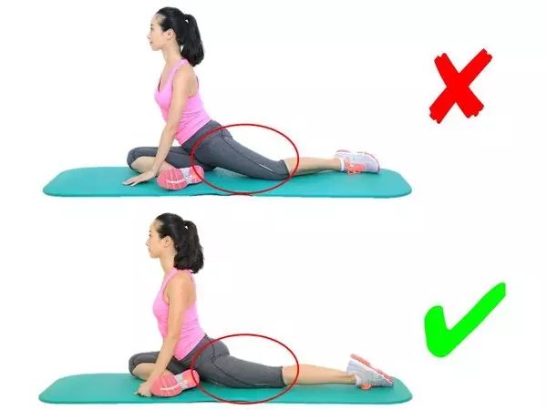 当然,也可以采用如下动作增加拉伸力度。但是膝盖一定要朝下,一旦向错误动作一样膝盖向外翻,拉伸效果就会大打折扣了。