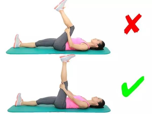 这个动作看着挺简单的,就是翘个二郎腿往身上拉,但是有些小细节要注意!不要把腰部拉离垫面,头部平躺于垫上。