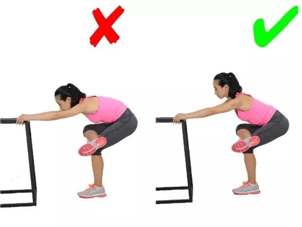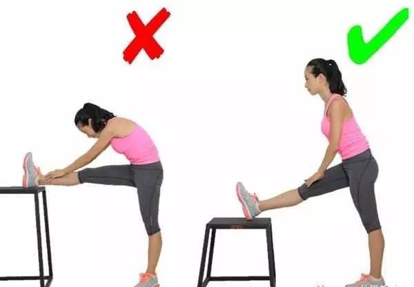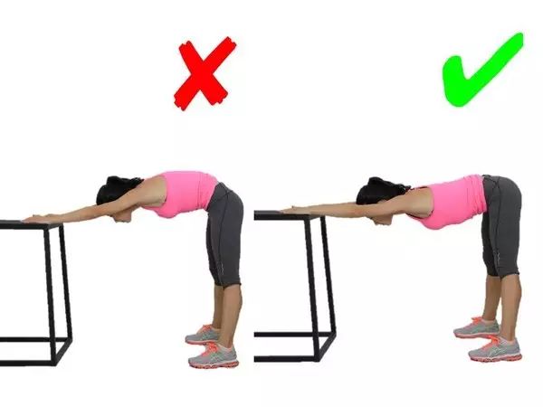 容易弯腰驼背造成脊柱的过大压力,同时容易拉伸强度过大。这一动作应该找个适当高度的物体,有拉伸感但不觉疼痛就行,还要保持腰背挺直。