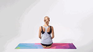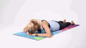 俯卧在垫面,双手交叉向对侧伸展