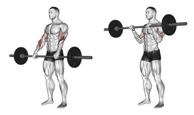 站姿的二头杠铃、哑铃弯举