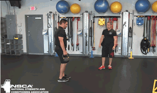 如果在进行动作时,右脚往前跨,左手持负荷;同理,如果是左脚往前跨,右手持负荷。
