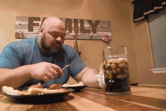 一个吃饭,一个喝蛋白粉