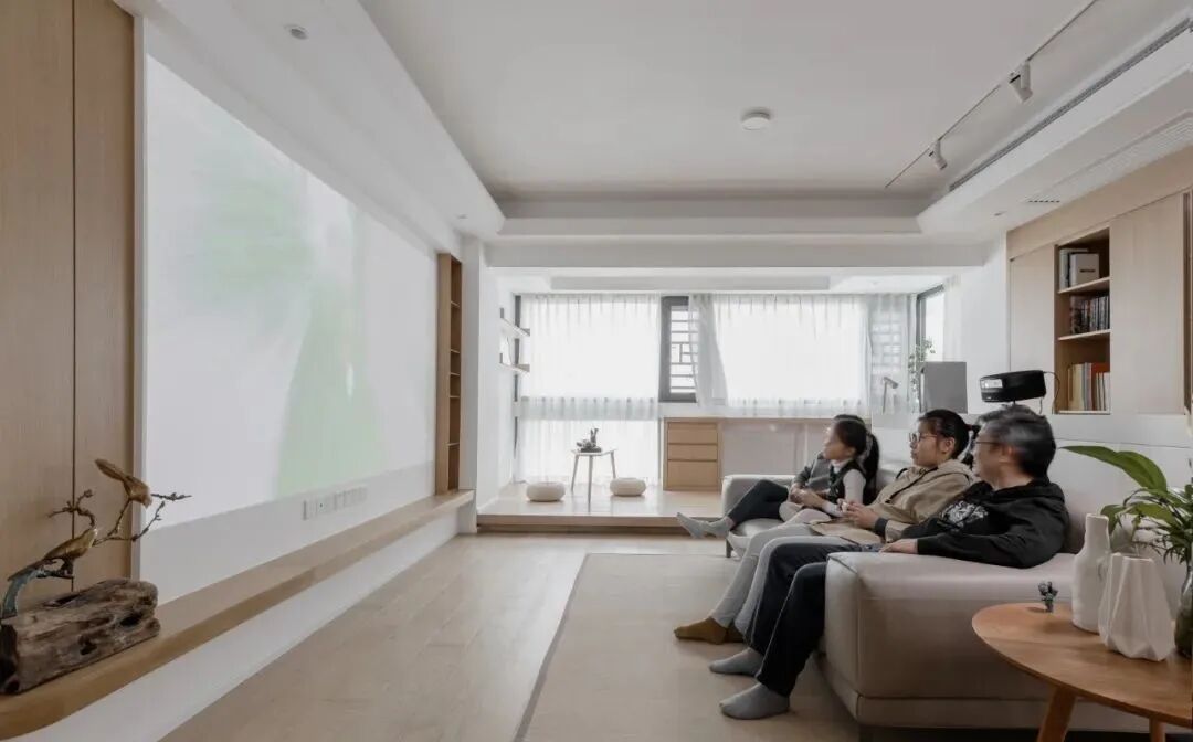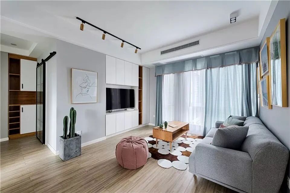 做成书架或者收纳柜,让客厅不再只局限于单一功能上,可以是亲子阅读室,也可以是手工活动室,还可以是茶歇区。