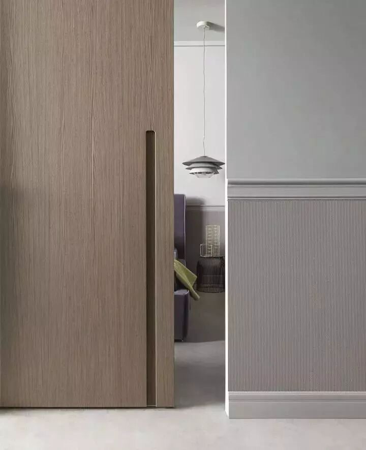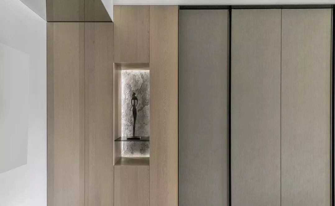 跟环境相结合与周边墙面等浑然一体,使得暗门看上去被隐藏起来,这样的设计增添了整体性,也在视觉上整体空间更开阔。