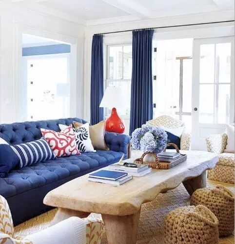 这种选择我们称之为次色调。次色调一般来自那些带显著色彩或者独特图案的中小型物件,比如茶几、地毯、台灯、靠垫或者其他装饰物。如果这些物件提供了两三种不同的次色调,那窗帘的颜色到底应该和谁保持一致,就要看具体情况了。窗帘跟着靠垫颜色走最安全。还有像台灯这样越小件的物品,越适合作为窗帘选色来源,可以避免同一颜色在家里铺得太多。