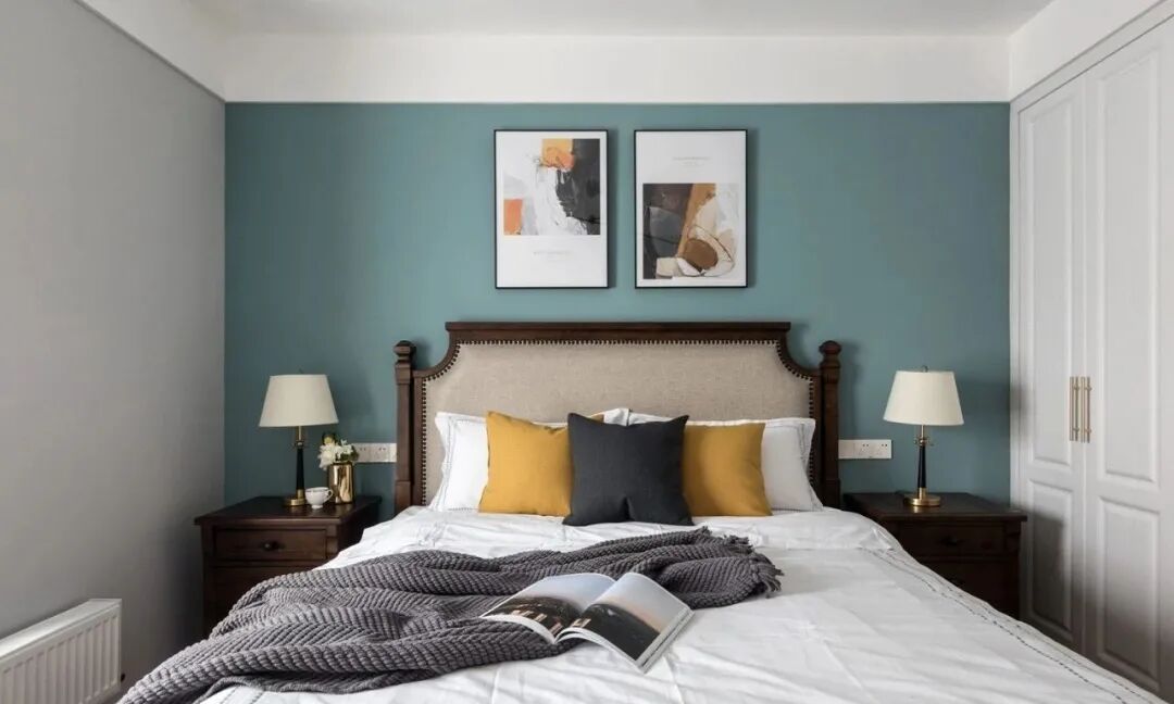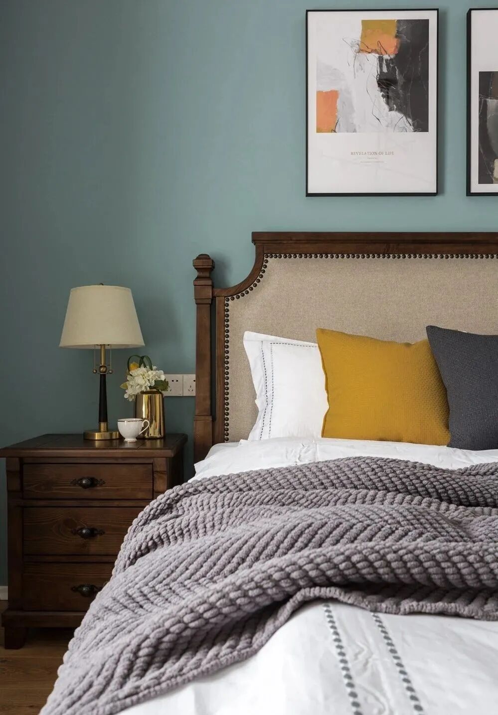 室内以水浅葱色搭配白色,黄杨木为整体家具材质,美式伴着明快清新的自然感扑面而来。