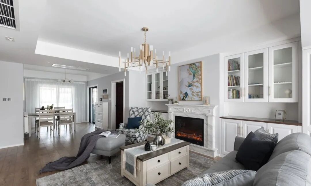 136㎡美式轻奢风,以浅色调为主,客厅舍弃电视墙,效果更亮眼!