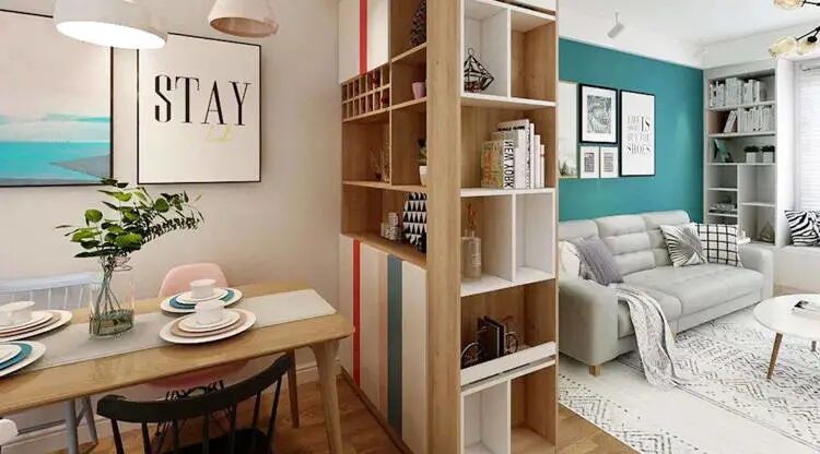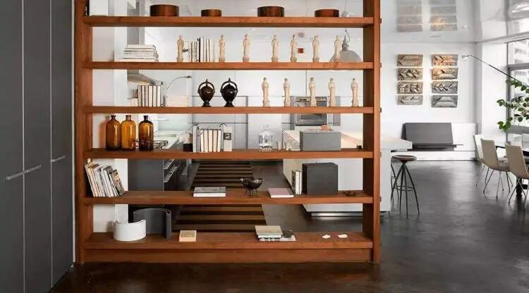 家具隔断:储物柜、书架等家具,也是可以用来做隔断的。用储物柜做隔断,既可存放我们的日常用品,也能改善风水,可以说是一举两得,不过要注意,储物柜不要过高或过矮,适中最好。