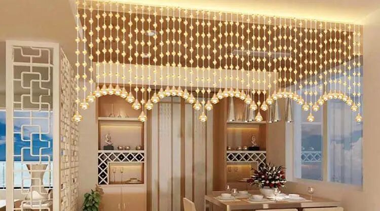 珠帘隔断:如果要在客厅做隔断,珠帘就是非常好的选择。珠帘属于软隔断,它是用珠子串成的,挂在客厅里,对采光和通风不会有任何影响,而且还十分漂亮,可为家中增添浪漫的气息。
