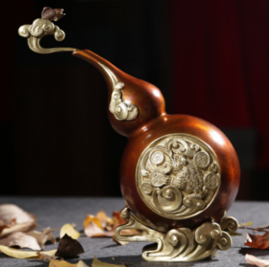 葫芦有天然木葫芦和铜葫芦之分,葫芦有“福禄”的谐音。
