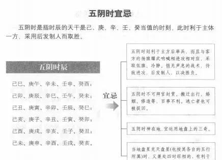 每天中己、庚、辛、壬、癸这五个天干当值的时刻称为“五阴时”。“五阴时”利主不利客,适合等待保守,利静不利动,不宜主动出击。