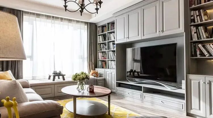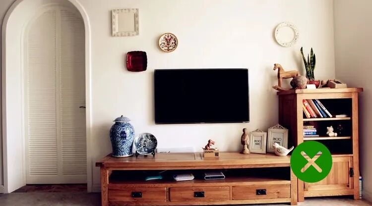 电视机一定要靠着实墙摆放,一来如果电视背后是过道走廊的话,来来往往的人,容易碰到电视,这很不安全。而若电视后面是窗户的话,那平时看电视,就是向着光,对眼睛不太好。