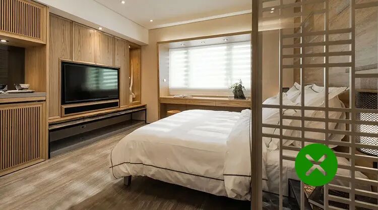 在卧室摆放电视,人舒服地躺在床上看电视,就容易让人看着看着忘了时间,回过神已经是半夜一两点了,不利于人的睡眠。