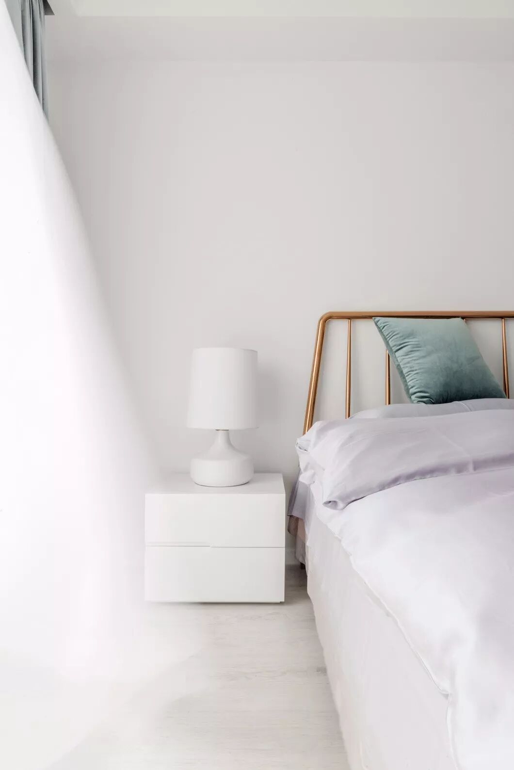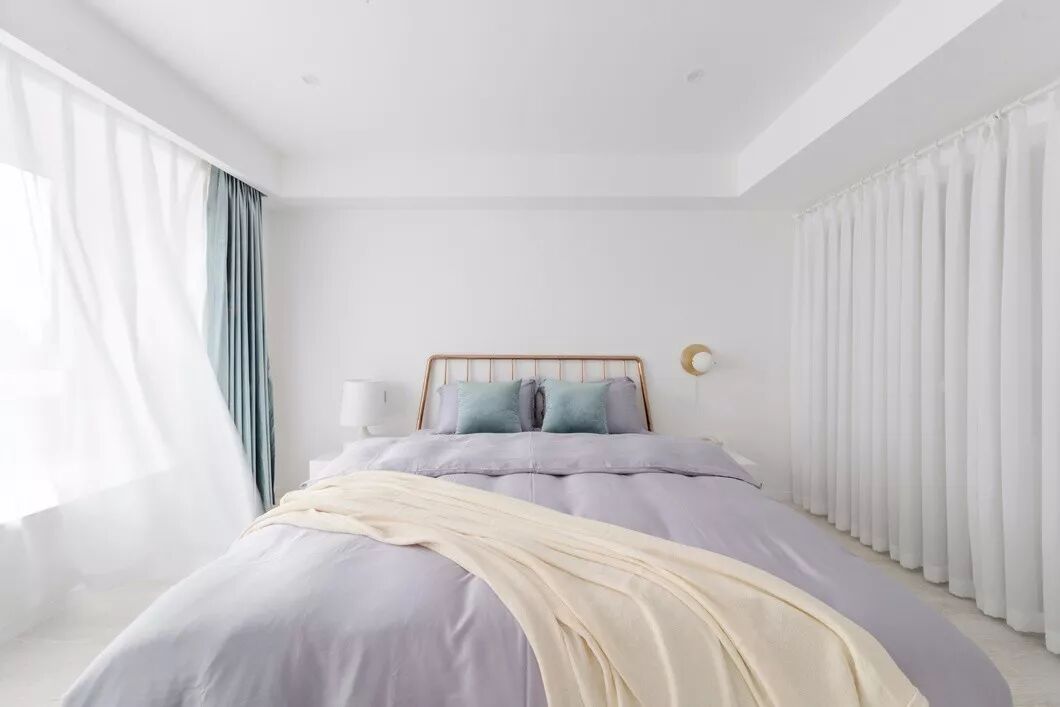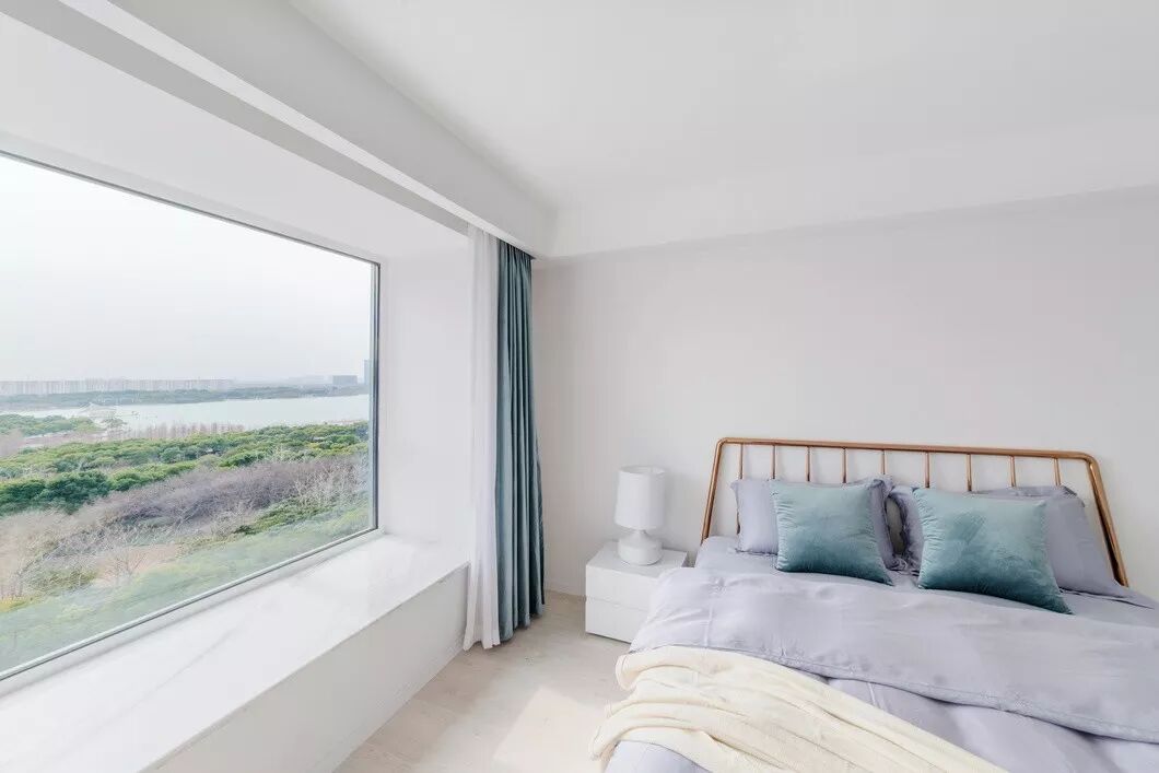 卧室延续客餐厅简单又不失单调的氛围,素色元素的搭配,立面层次的运用,加之软装的色彩点缀,提升卧室的韵味,营造温暖安逸的休息环境。