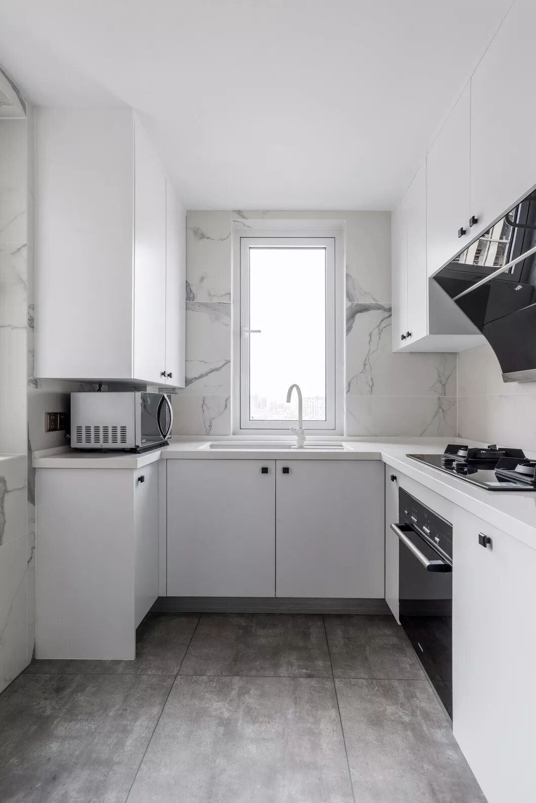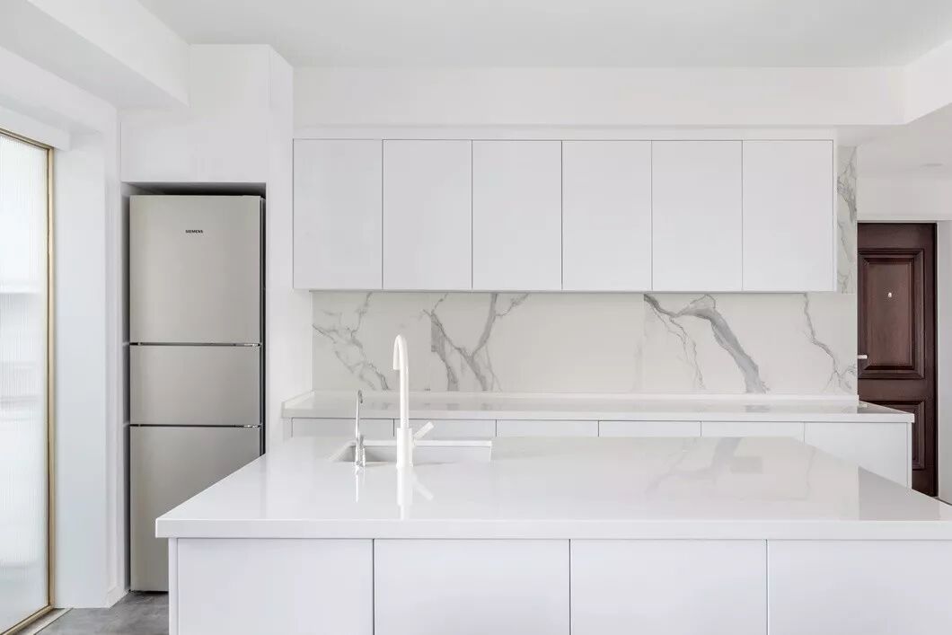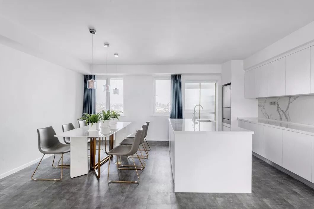 用素雅的颜色去烘托仪式感,效果是显而易见的,白色的“画布”搭配“缤纷”的美食,给整个空间添加了烟火气息。造型简单的厨房,经过改造,采光良好,操作台增大,黑白相交的色彩也让空间多了几分时尚元素。